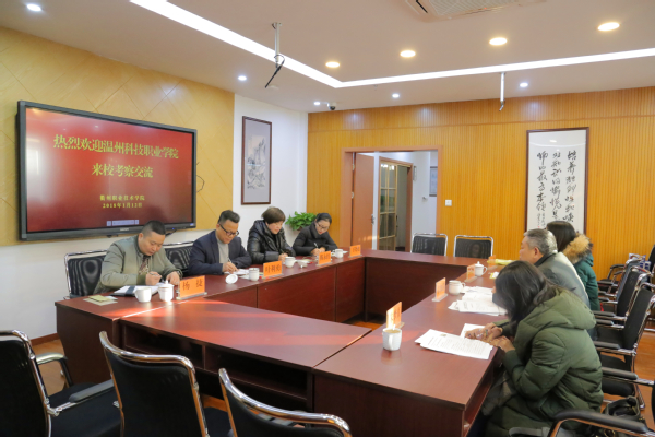 1月12日下午,温州科技职业学院纪委书记叶利勇一行来我校对党风廉政建设方面工作考察学习,校党委书记崔戴飞、纪委书记章加春等陪同考察。