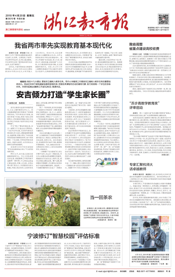 《浙江教育报》2018年4月20日 头版报道 本报通讯员 欧阳洪萍 丁东昇 摄