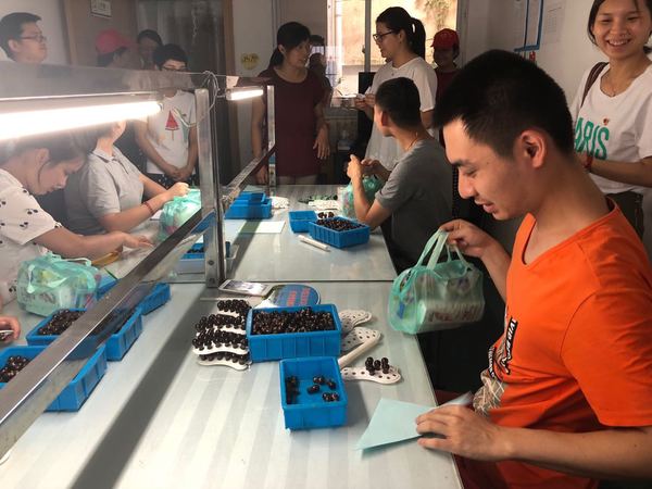 除对所有工疗残疾人进行来料加工的培训外,志愿者们还赠送了精心准备的洗漱包,表达关心,希望他们在骄阳似火的夏日神清气爽。