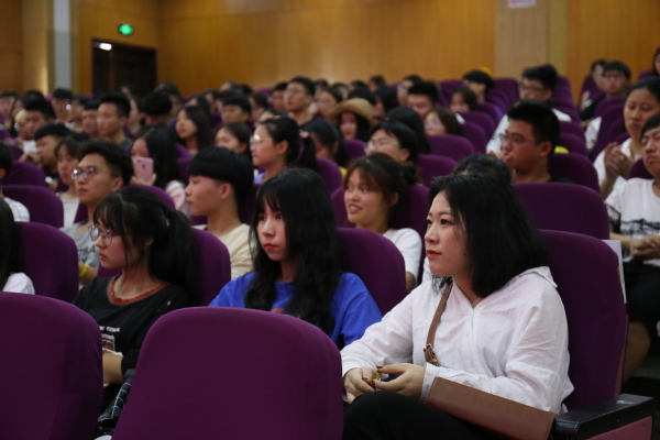霍庆福和何敬两位老师分别就艺术设计和摄影摄像技术两个专业作了介绍,来自两个专业的四位毕业生,向同学们传递了自身在学习、生活方面的宝贵经验。最后,辅导员刘琤老师给2018级的同学们上了一堂有关校园安全以及学校相关政策法规的普及课程。