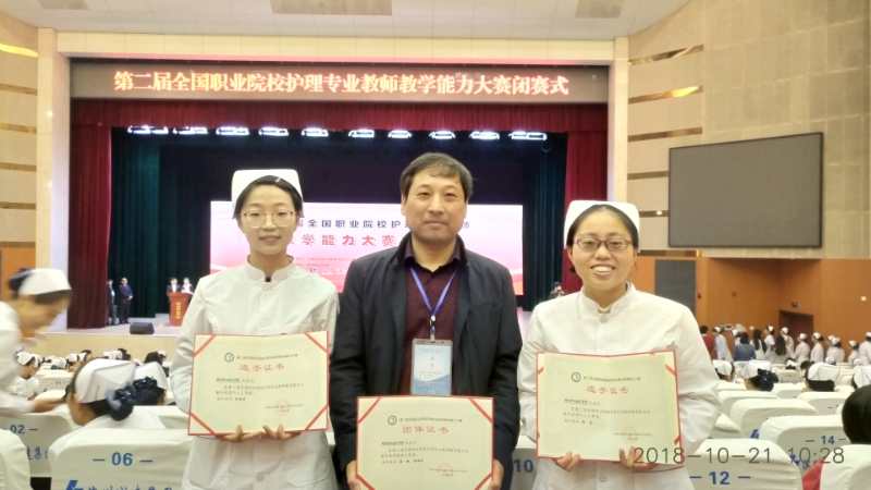 10月21日,由医学院副院长吴忠勤带队,医学院青年教师饶艳、刘瑞芳赴滨州,参加第二届全国职业院校护理专业教师教学能力大赛。本次大赛由中国职业技术教育学会卫生教育委员会主办,滨州职业学院承办。来自全国29个省市自治区直辖市的124所学校的234名参赛教师参加了本次大赛,其中,高职84所161人参赛。经过激烈角逐,最终,我校医学院参赛团队获得了团体三等奖,饶艳老师、刘瑞芳老师分获个人三等奖。