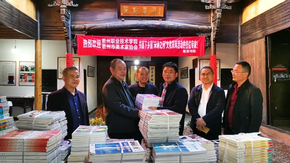 11月9日下午,我校书画协会会同衢州市美协书画家一行11人来到常山县招贤镇高埂村箬溪自然村,开展“书画下乡”活动。大家参观了箬溪村抗日纪念馆,在箬溪村书院创作书画,并向箬溪村捐赠图书300多册。