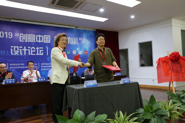 副校长何百通致欢迎词,欢迎各位嘉宾的莅临,并向参会嘉宾介绍了学校的整体概况。张震甫就创意中国设计联盟以及2019艺造中国—长白山文化旅游纪念品创意设计大赛赛事作说明、  为作品征集衢州启动仪式揭牌,衢州慧谷工业设计产业园推介等。艺术设计学院与创意中国设计联盟签订合作协议。