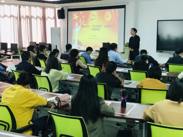 10月23日下午两点,党委委员、副校长傅元勋在财务共享实训室给经济管理学院全体党员上了 “不忘初心、牢记使命”主题教育专题党课。