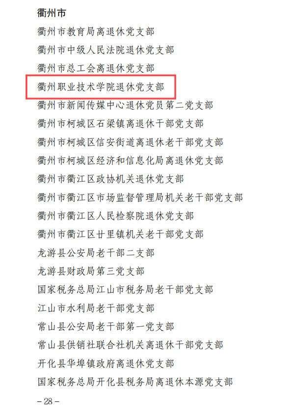 近日,中共浙江省委老干部局公布了第二批离退休干部“三强六好”示范党支部名单,我校退休党支部成功入选。