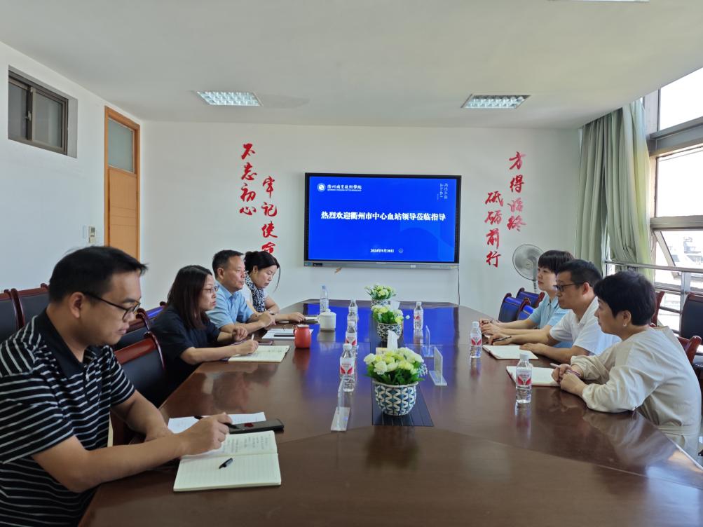 9月30日上午,衢州市中心血站站长吴世泉,副站长胡锋华一行来校调研交流,医学院院长邱惠萍、党总支书记余文富、党总支副书记周贞等参加座谈交流。