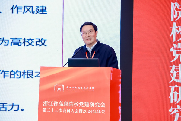 12月5日,由浙江省高职院校党建研究会主办、浙江工商职业技术学院承办的浙江省高职院校党建研究会第三十三次会员大会暨2024年年会在宁波举行,大会为期3天。中国高等教育学会第六届理事会会长瞿振元,宁波市副市长徐强,浙江省委教育工委专职副书记、省教育厅党组副书记许翰信,浙江省教育厅组织处处长陈钦林,宁波市教育局副局长、党委委员陈金辉,浙江省高职院校党建研究会会长周建松,副会长汤兆武、王振洪、陈厥祥,山东、江西及省内20余位高职院校党委书记、校长出席会议。全省50所高职院校200余名代表参加了会议。我校党委书记徐须实,党委委员、组织部部长周帅带队参会。